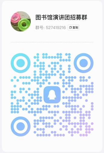 1. 报名:有意者扫码加入“图书馆演讲团招募群”,下载、填写并上交《yabo鸭脖官网图书馆演讲团报名表》,文件以“学院+班级+学号+姓名”命名。后续面试等信息将在QQ群内通知。