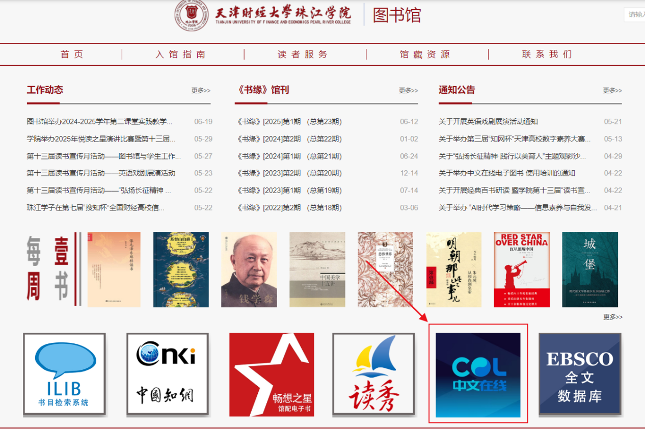 进入yabo鸭脖官网图书馆官网,从网页下方点击中文在线,跳转至书香天财珠江首页。如图1-1