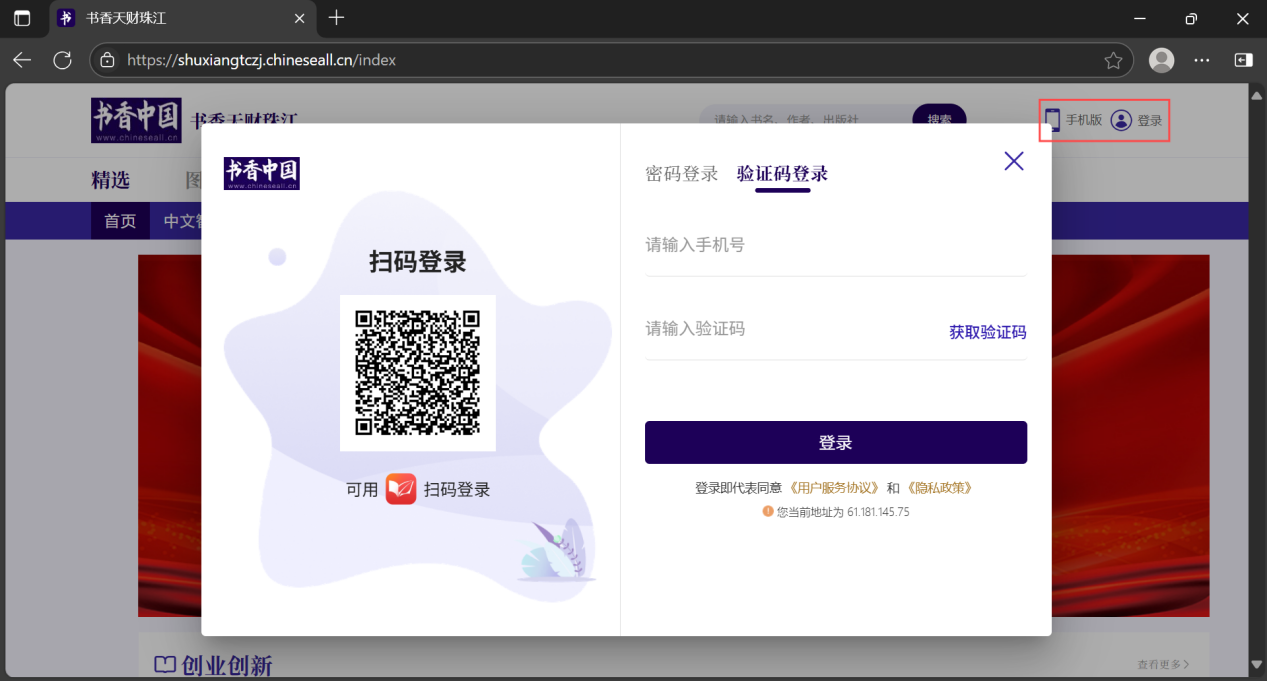 图2-3 书香天财珠江移动端登录页