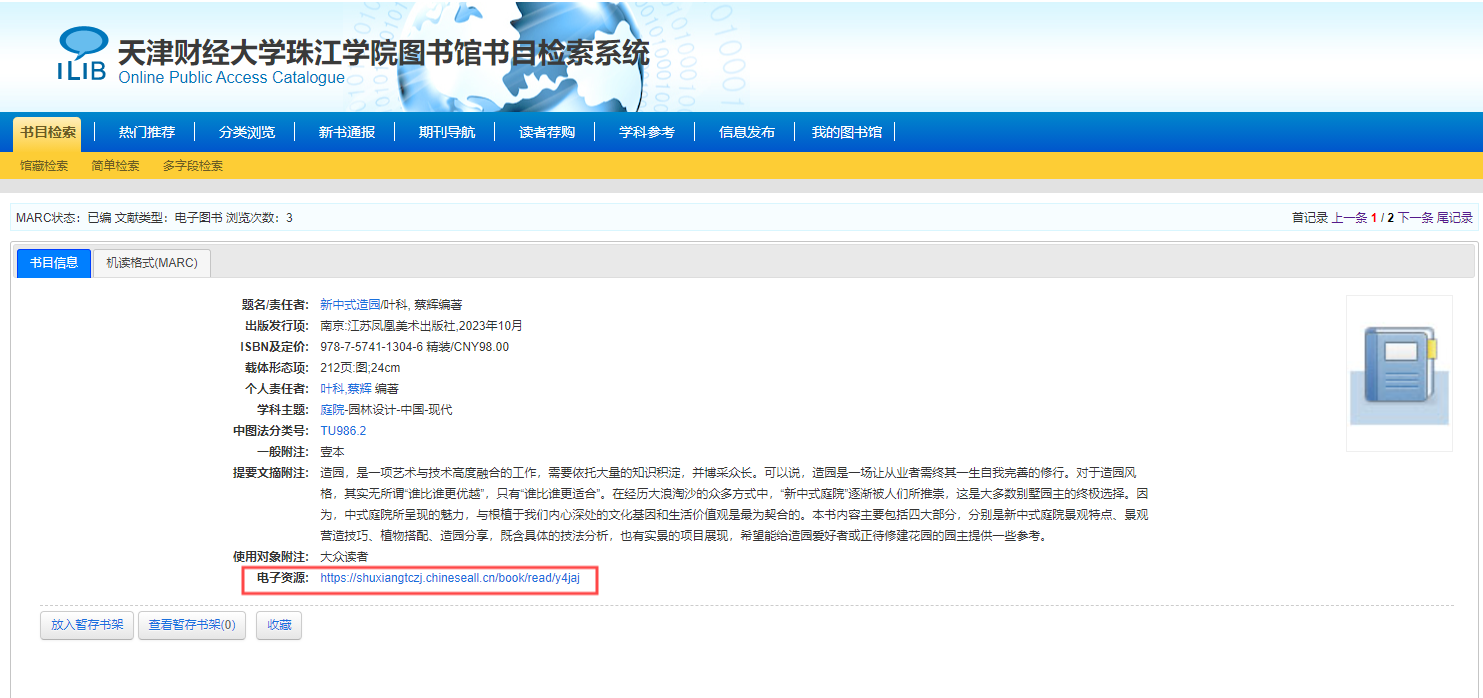图3-4 详细书目信息