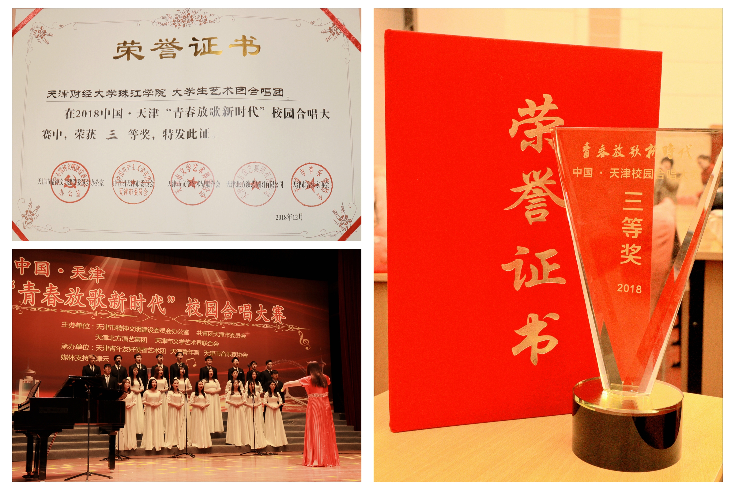 为喜迎改革开放40周年,由天津市精神文明建设委员会办公室、共青团天津市委员会、天津市文学艺术界联合会、北方演艺集团主办,天津青年友好使者艺术团、天津青年宫、天津市音乐家协会、天津广播电视台音乐广播联合承办的2018中国•天津“放歌新时代”青年歌曲演唱大赛、“青春梦 中国梦”青年诗歌朗诵大赛、“青春放歌新时代” 校园合唱大赛于近期圆满落幕。我院在青年歌曲演唱大赛和青年诗歌朗诵大赛中获得最佳组织奖,学院大学生合唱团参赛作品在校园合唱大赛中荣获三等奖。