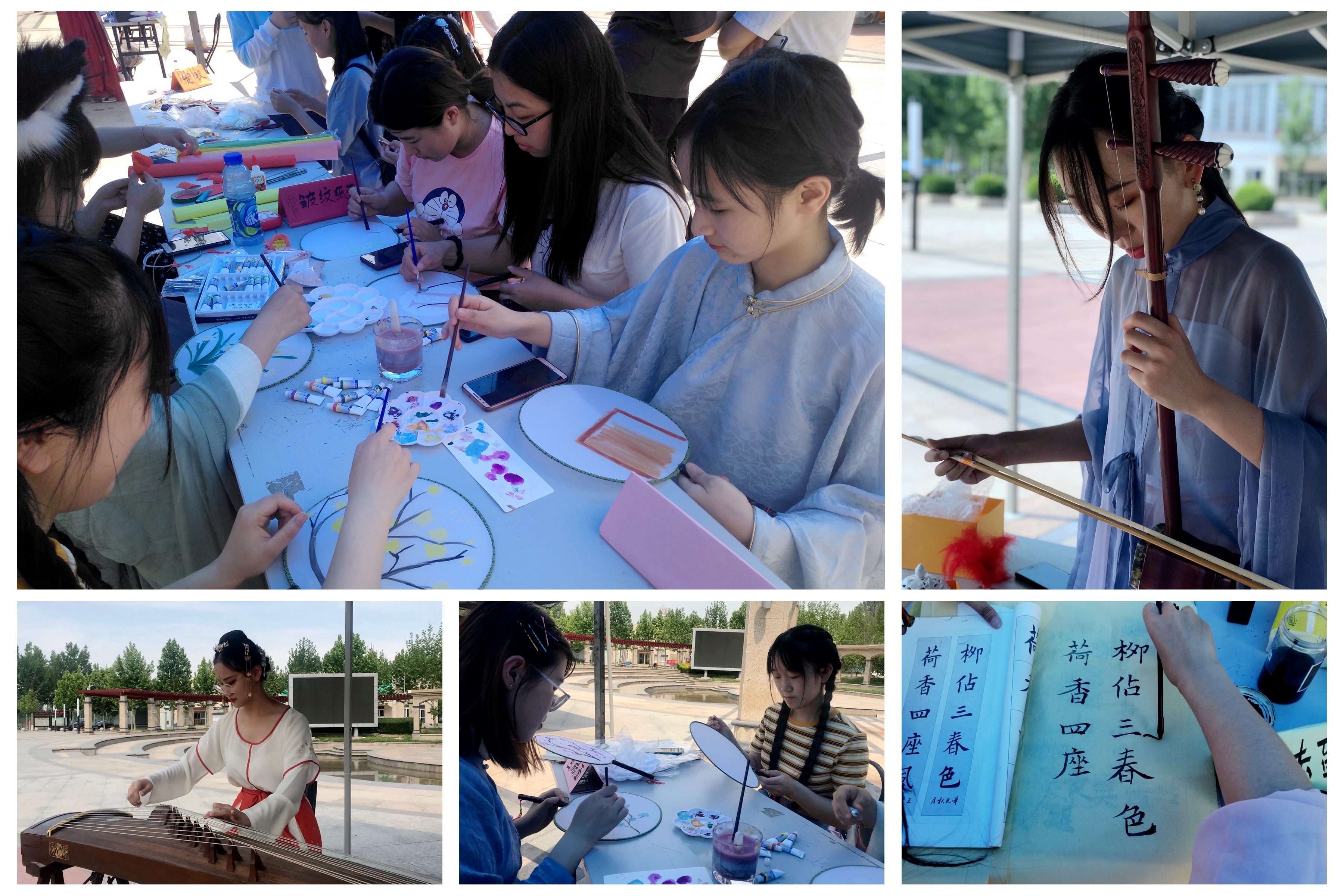 2019年6月1日10:00,我院社联汉韵汉文化社与众创空间薇甜烘培坊、茶哆哆、自观三店铺合作于小广场举办大型集会——雅集。参加本次雅集的成员约100余人。其中充当NPC社员17人,总到场社员40余人,社外成员50余人。
