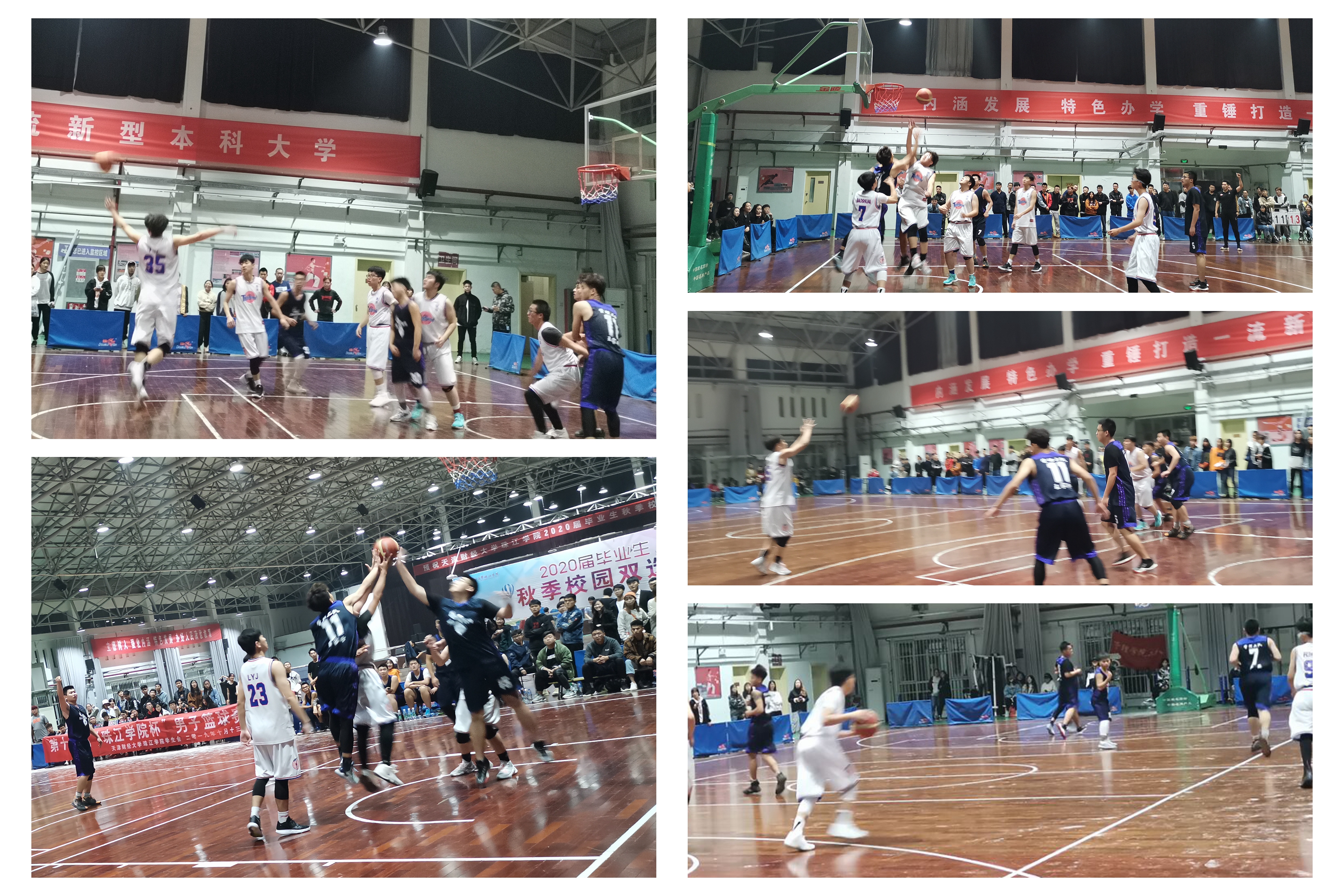 第一场管理学院一队对阵数据工程学院一队,第二场经济学院一队对数据工程学院二队,第三场经济学院二队对战艺术学院。第四场管理学院三队对战管理学院二队。一阵哨声吹起,准备充足的双方队员,个个聚精会神,紧盯着那弹跳起的篮球。数据工程学院一队率先进了第一球,大大鼓舞了队员的士气。管理学院一队也不甘示弱率先进了第一个三分球。最终数据工程学院一队以35:42的比分战胜管理学院一队。经济学院一队带着球在场上奔跑,娴熟运球,突出对手的“重围”,直逼篮下。最终以49:52的成绩战胜数据工程学院二队。经济学院二队也后来居上,他们直接来到篮下,一个虎跳加转身投篮,篮球在空中划过一条漂亮的弧线,落入筐内,经济学院二队以40:22的成绩领先艺术学院,获得了胜利。管理学院二队队员双手拿着球,两支胳膊左右摆动,晃过对方两名队员的防守,运球后三个健步,纵身一跃,一个腾空,投进一个两分球。随着观众们呐喊加油的声音,管理学院二队以70:59摘得头筹。