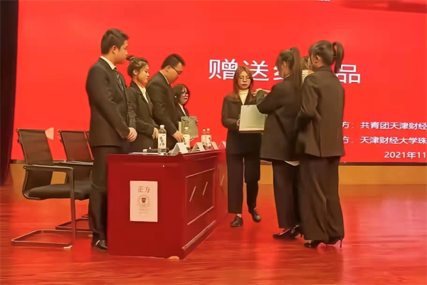 校学生会现执行主席孙笛潇给双方辩手颁发纪念礼品,双方合影留念,本届辩论赛开幕式圆满结束。