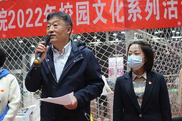 接下来,我院党委书记靳术海讲话。靳书记与同学们分享了他在大学时期参加体育运动的经历,当年的学生活动给他留下来深刻的印象,体现了开展丰富多彩的学生体育活动的重要性,并表示对本届篮球赛给予高度的关注,对各位老师和同学的辛勤付出给予肯定,提醒选手们应做好热身,注意比赛安全,希望同学们赛出热情赛出自我,怀着满腔热爱迎接赛。
