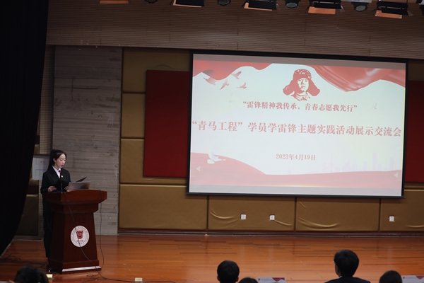 2023年4月19日下午,“雷锋精神我传承,青春志愿我先行”——“青马工程”学员学雷锋主题实践活动展示交流会在弘毅楼报告厅召开,“青马班”学习委员蔡心怡主持,学院团委副书记张传杰及全体“青马工程”学员参加。