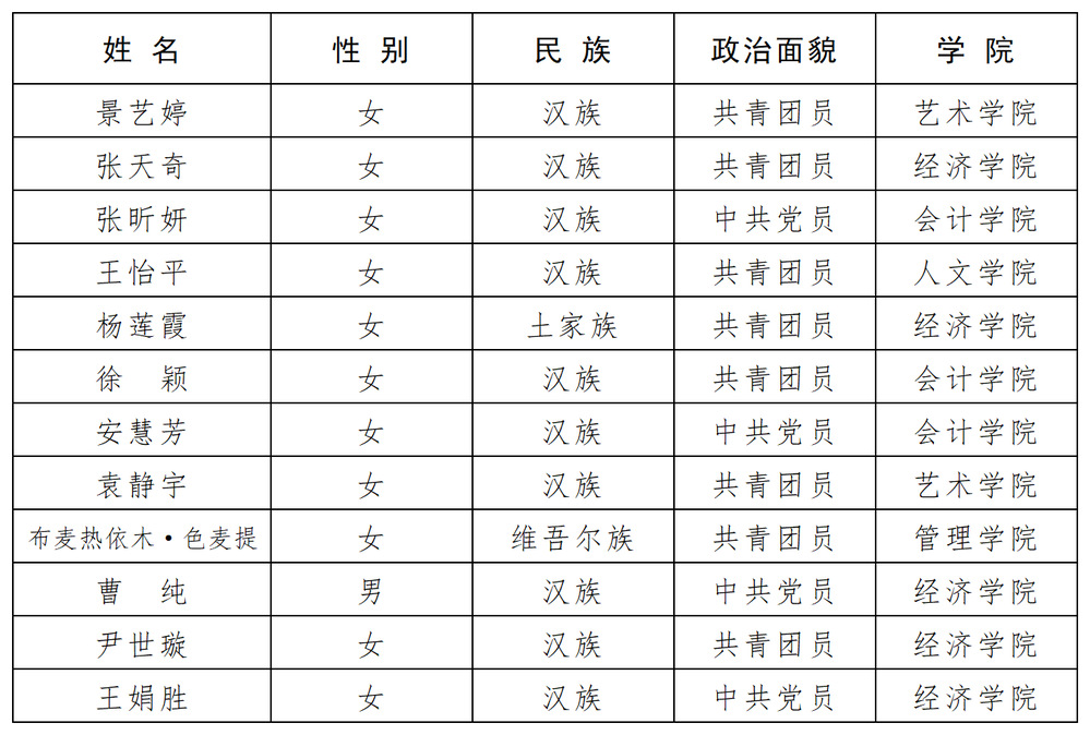 根据《2025—2026年度大学生志愿服务西部计划实施方案》,学院西部计划项目办认真开展了2025-2026年度大学生志愿服务西部计划宣传动员和招募选拔工作。经个人报名,通过资格审核、笔试、面试、心理测试等选拔,现将学院2025年拟入选西部计划志愿者名单公示如下: