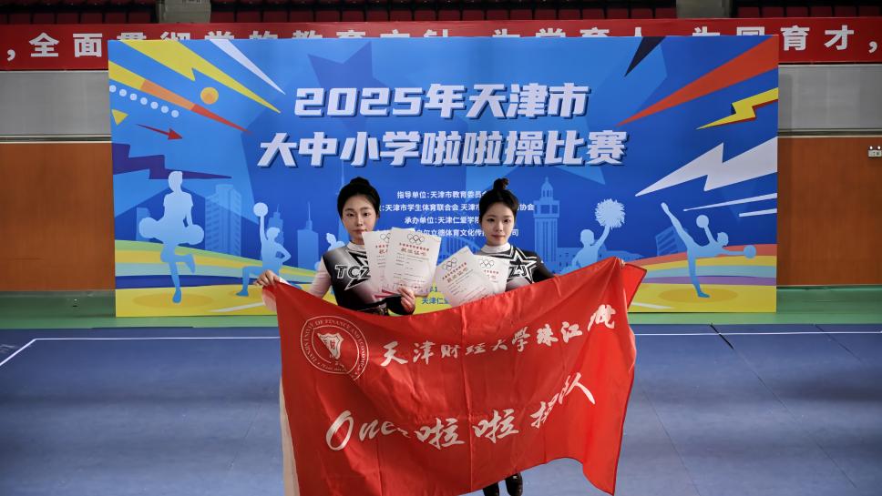 本次比赛由天津市教育委员会指导,天津市学生体育联合会、天津市啦啦操运动协会联合主办,天津仁爱学院承办,共吸引了223所学校的优秀队伍同台竞技,其中报名大学30个单位,中小学193个单位,6124人次运动员。我院学子管理学院刘思涵、会计学院刘欣艳同学,在体育部张慧敏老师的专业指导下刻苦训练:从双人爵士的节奏把控、动作衔接,到花球表演的难度突破、力量展现,每一个细节都经过反复打磨,每一次排练都凝聚着汗水与坚持。比赛现场在动感旋律中展现出极强的凝聚力与艺术感染力,精彩表现引得现场掌声阵阵。