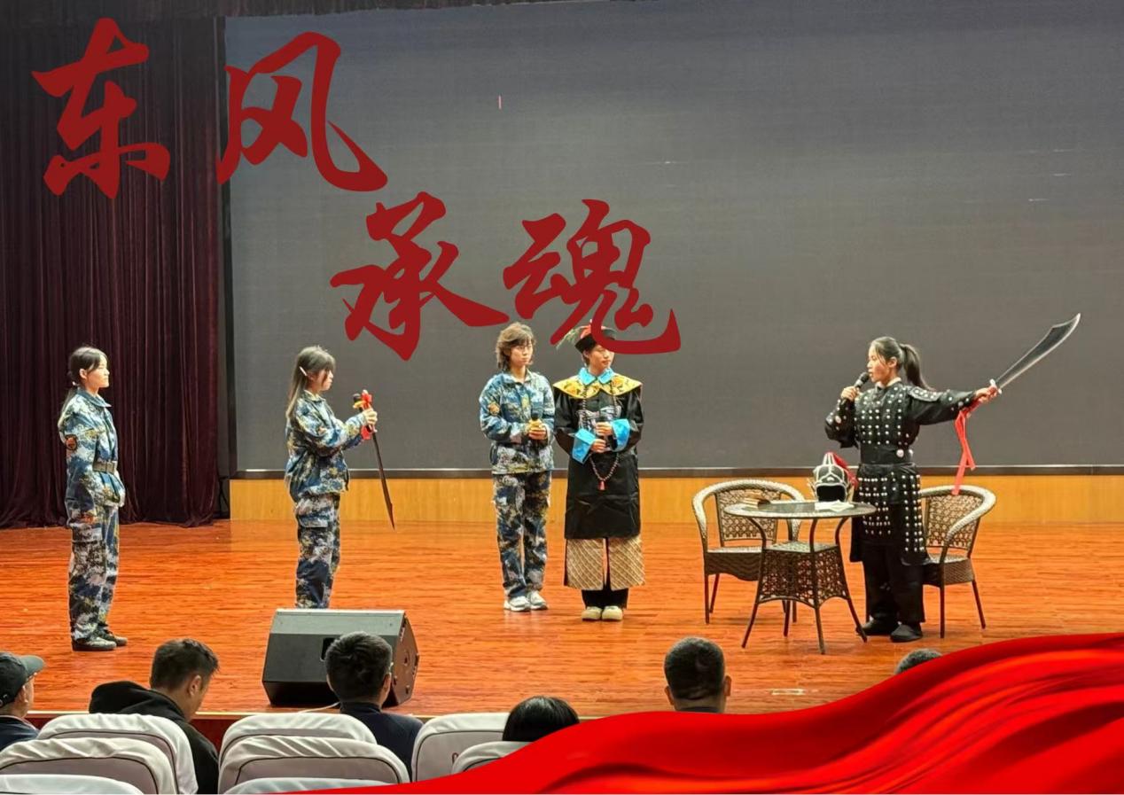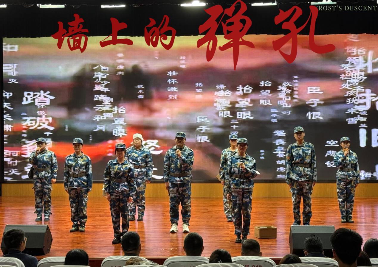 管理学院《墙上的弹孔》聚焦台儿庄惨烈巷战,彰显了中国军人的无畏牺牲;会计学院《东风承魂》则以跨越百年的叙事,深刻诠释了民族精神的代代传承。表演间隙,大学生军人服务中心深情献唱《铭记》,将沉重的岁月化作动人音符,深切致敬不屈过往,抚慰不朽英灵。