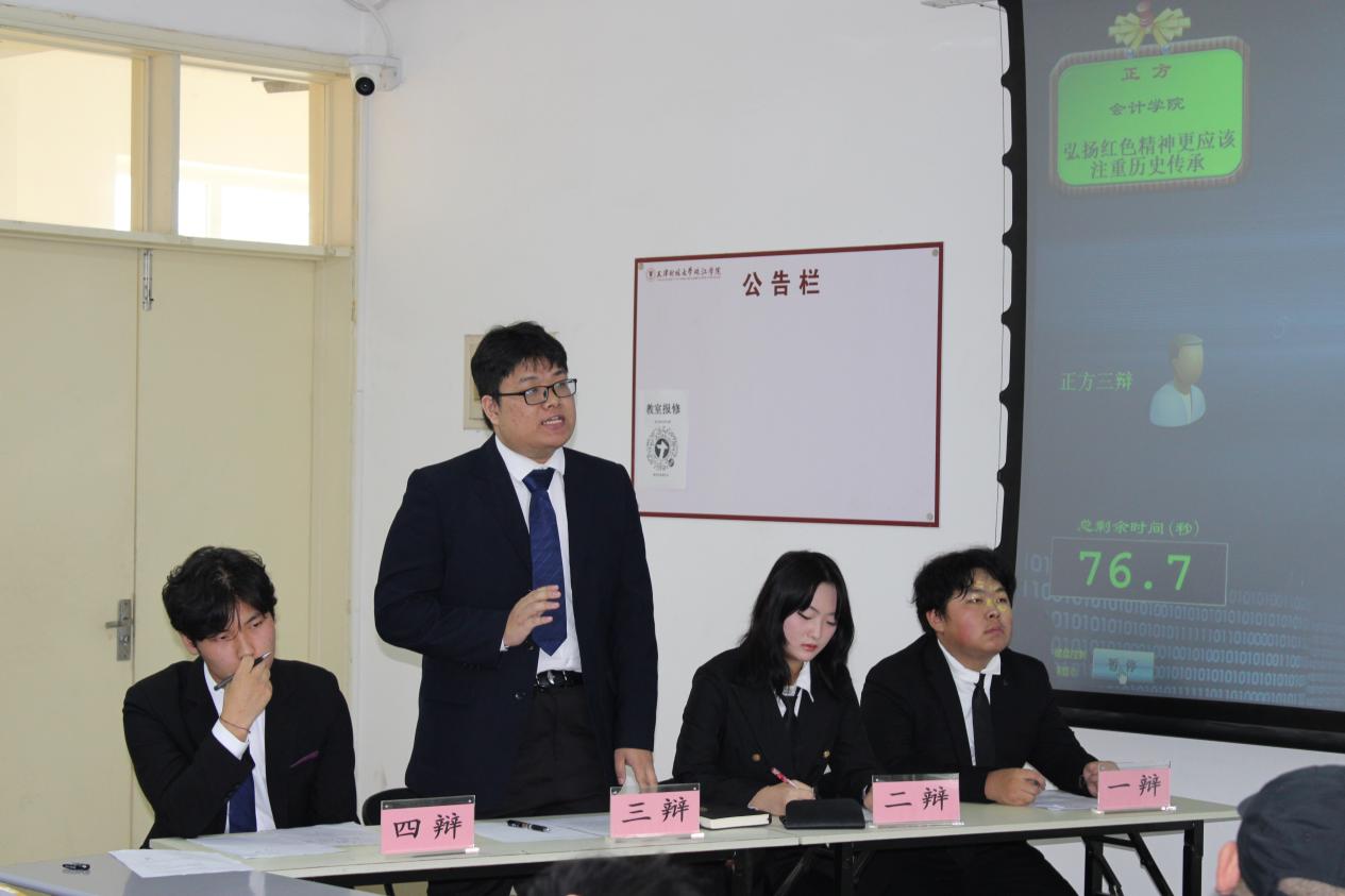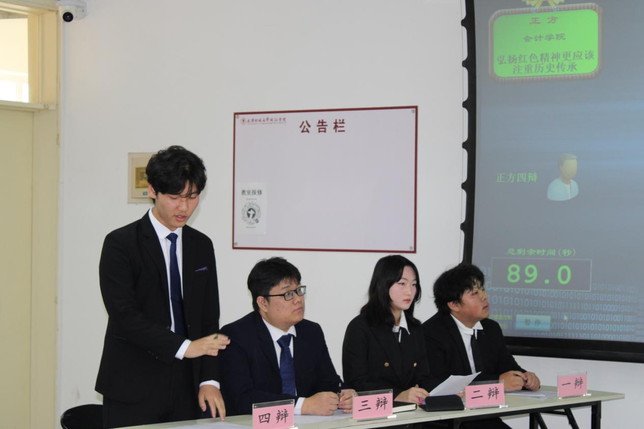 辩论过程中,选手以井冈山精神、长征精神、“两弹一星”事迹等红色资源为思想根基,结合新时代强军实践与青年担当,展开深度思辨。质询与自由辩论环节,双方就“如何让红色精神不入空谈”“怎样以创新传播巩固主流价值”等现实问题激烈交锋,选手们辩论的不仅是单一的议题,更是在践行一种思想上的“匹夫有责”。他们以唇为枪,以舌为剑,在思维的战场上,为所信的真理“血战到底”。这份对逻辑的执着、对价值的坚守,正是我们这个时代青年应有并传承的担当与精神。
