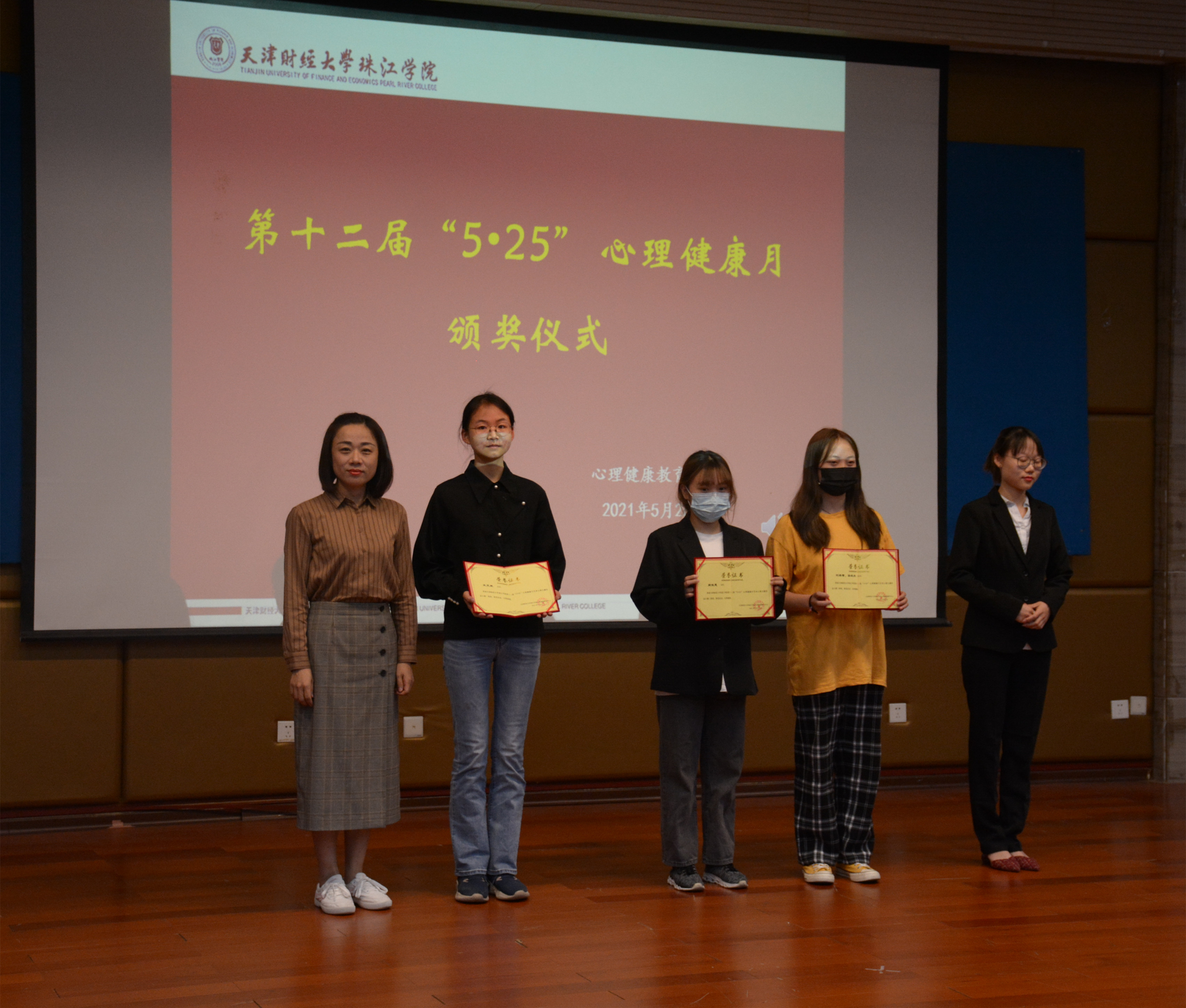在优美而欢快的钢琴曲中,第十二届5•25心理健康月闭幕式正式拉开帷幕。与会的领导、老师和同学共同观看了5•25心理健康成果VCR及学生活动优秀作品展播。之后,由嘉宾为各项活动获奖学生、年度优秀心理工作老师和心理工作优秀团队颁奖。