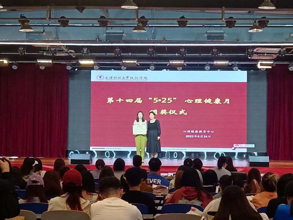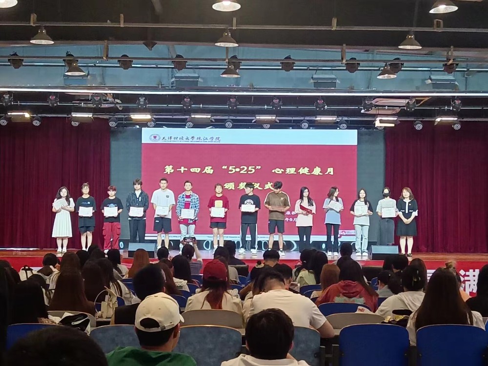 在第十四届5•25心理健康月中,心理健康教育中心共开展了“爱的抱抱”主题活动、心理剧大赛、心理健康励志演讲、最美护心志愿者评选、心理文化创意作品设计大赛、心理歌舞创作大赛等一系列活动。并遴选优秀学生作品参加天津市心理健康月各项比赛,也进入到紧张的评选阶段。在同学们的掌声与期待中,第十四届5•25心理健康月闭幕式正式拉开帷幕。与会的领导、老师和同学共同观看了5•25心理健康月成果表演。之后,进行了心理健康月各项活动、优秀心理健康工作指导教师及优秀团队的颁奖。