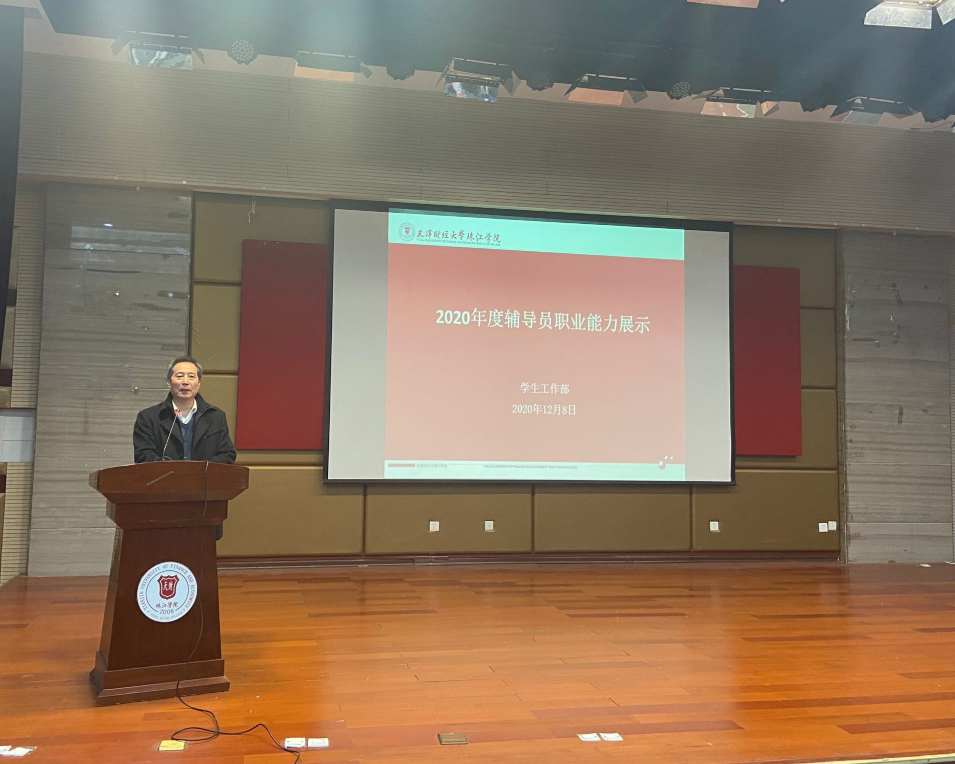 为深入贯彻落实全国教育大会精神和全国高校思想政治工作会议精神,加强我院辅导员队伍建设。12月8日上午,学生工作部在弘毅报告厅举办了2020年度辅导员职业能力展示活动。学院党委书记李建航、党委副书记王猛出席活动,全体辅导员、生活辅导员到场参加和观摩。活动由周圆同志主持。