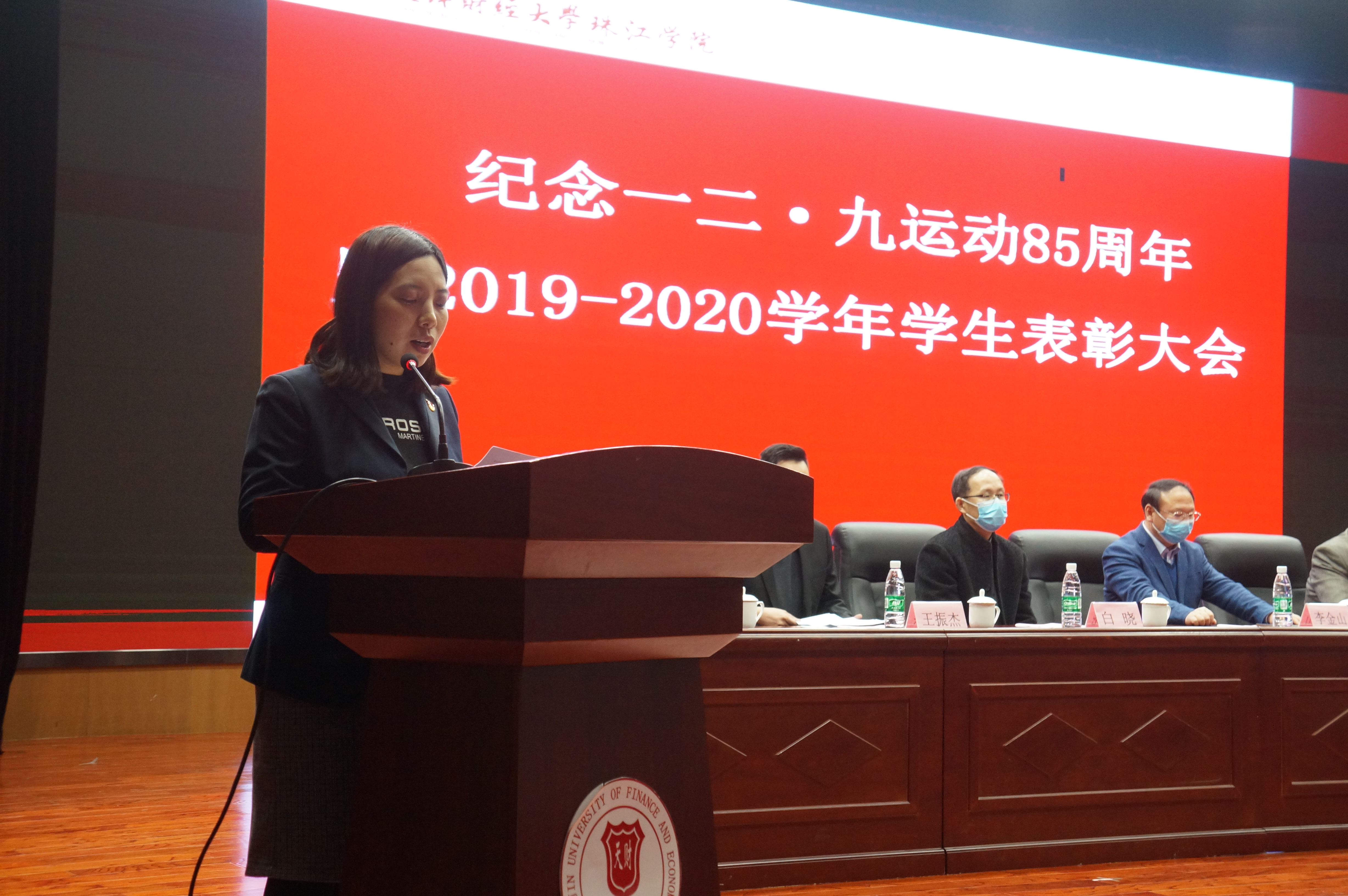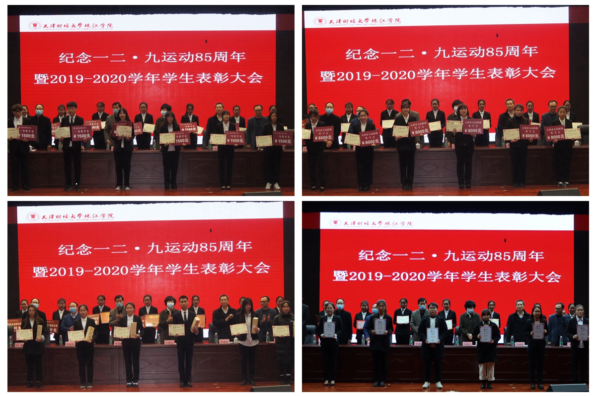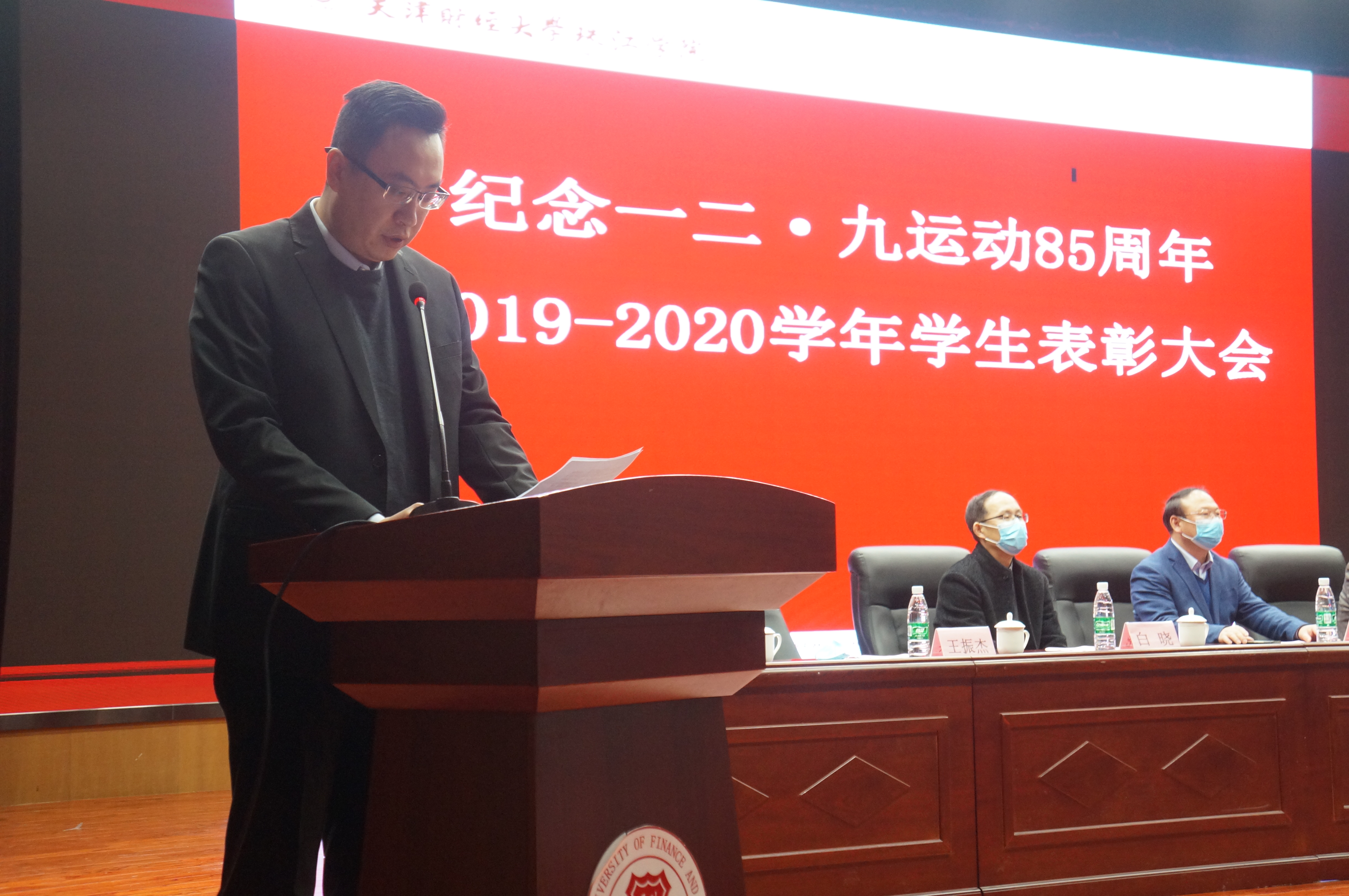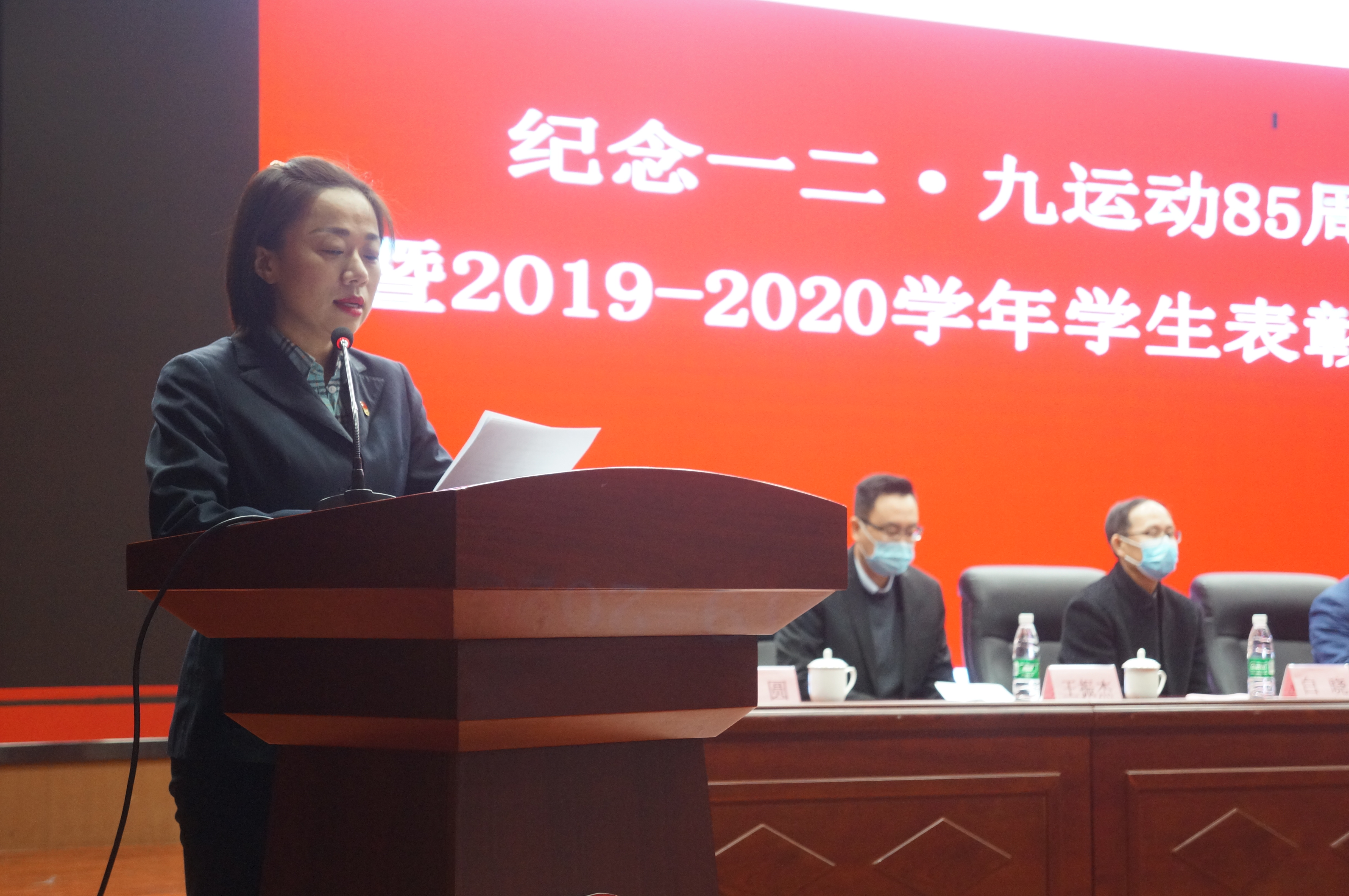 2020年12月9日下午,学院纪念一二·九运动85周年暨2019-2020学年学生表彰大会在中和楼报告厅隆重举行。学院领导班子成员出席本次大会并为获奖学生颁奖,学生工作部、团委、二级学院辅导员及500余名学生代表参加了表彰大会。大会由周圆同志主持。