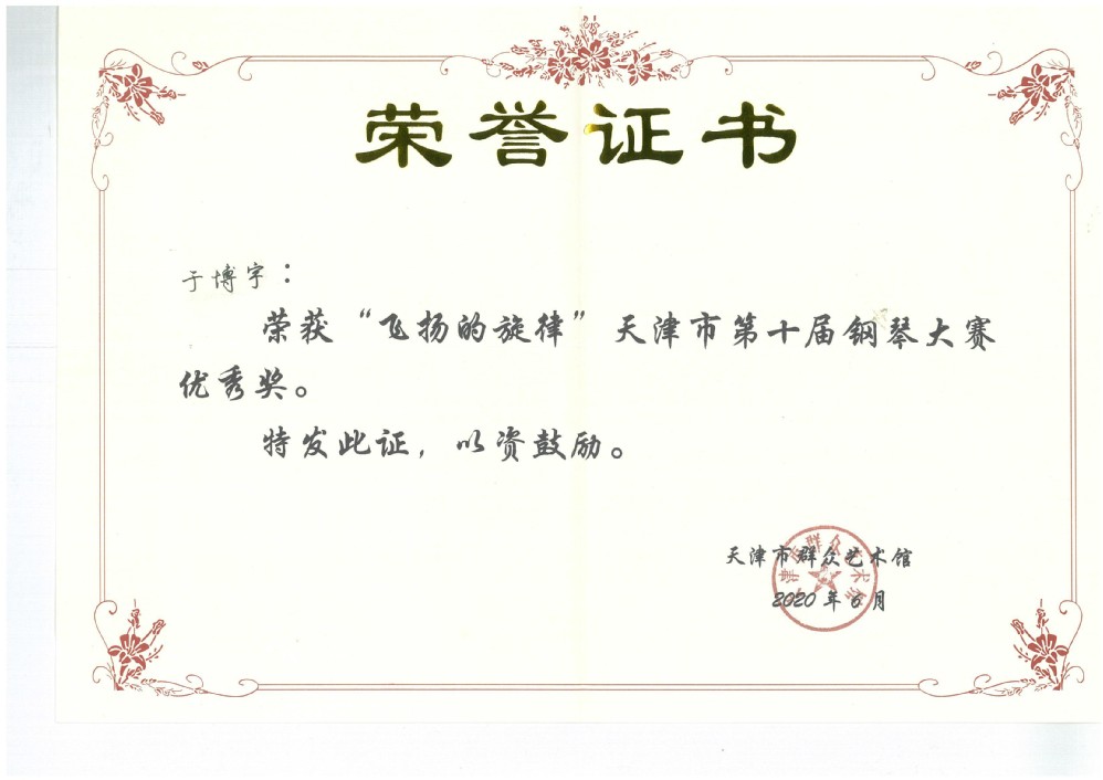 天津市第十届钢琴大赛优秀奖