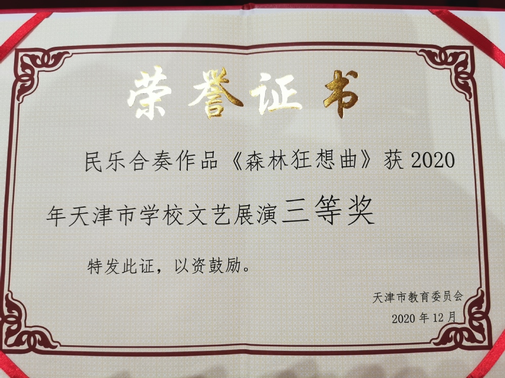 2020年天津市学校文艺展演民族器乐小合奏(大学组)天津市三等奖