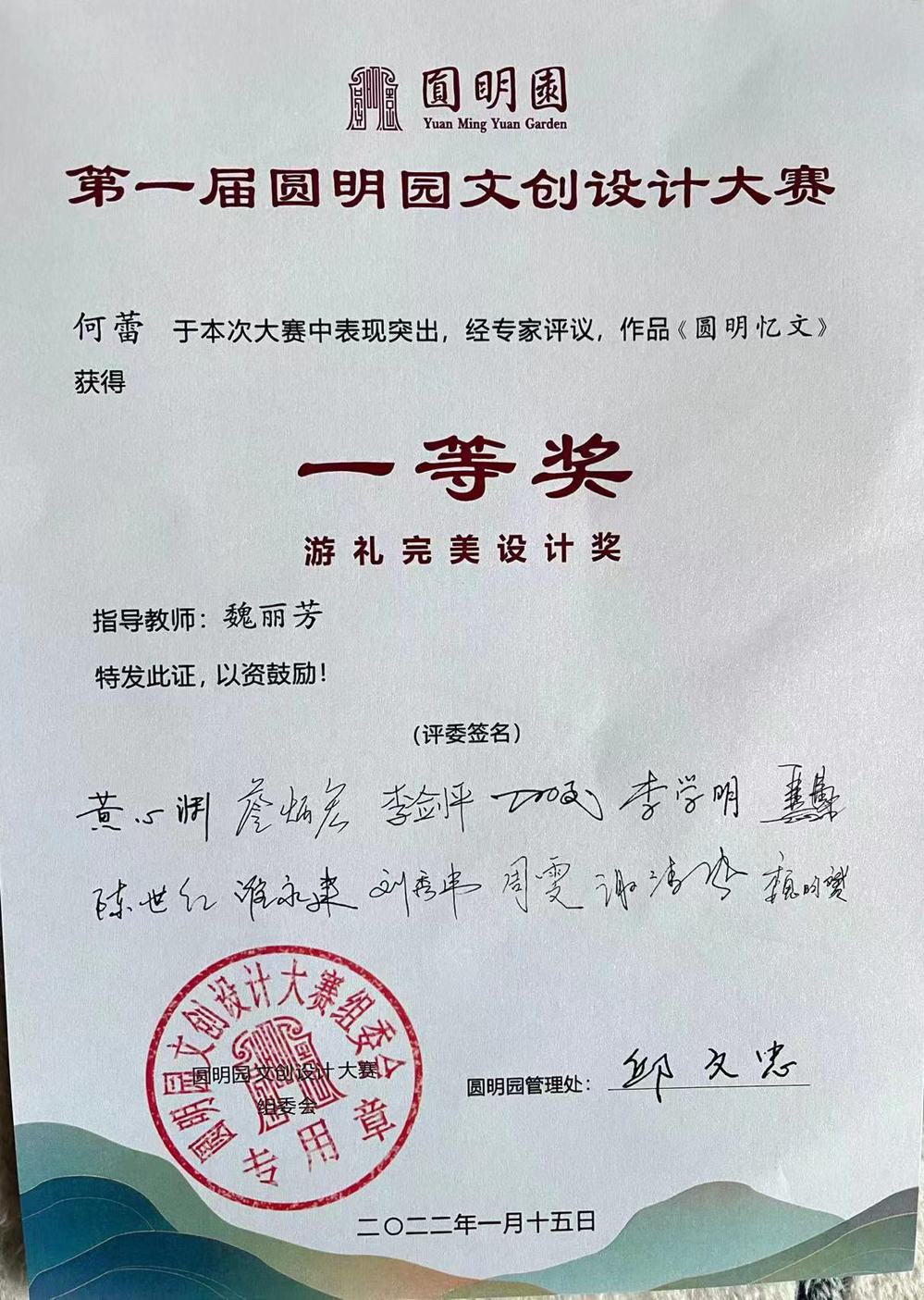 第一届圆明园文创设计大赛省部级一等奖