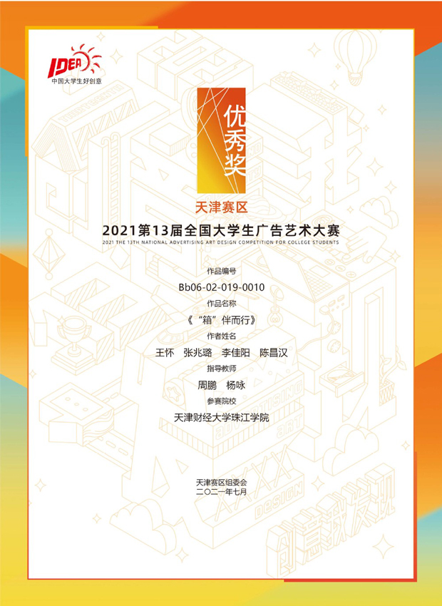 第13届全国大学生广告艺术大赛省部级优秀奖