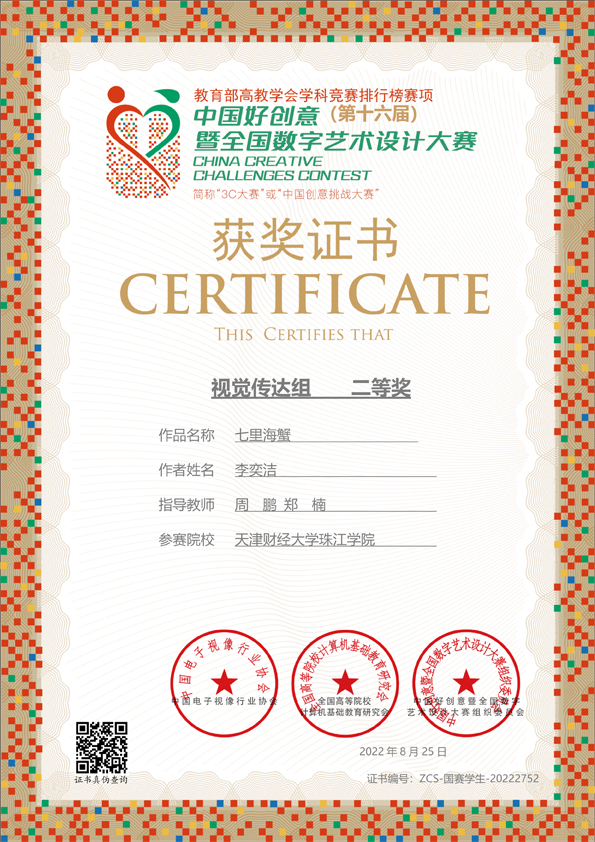 第十六届中国好创意暨全国数字艺术设计大赛国家级二等奖