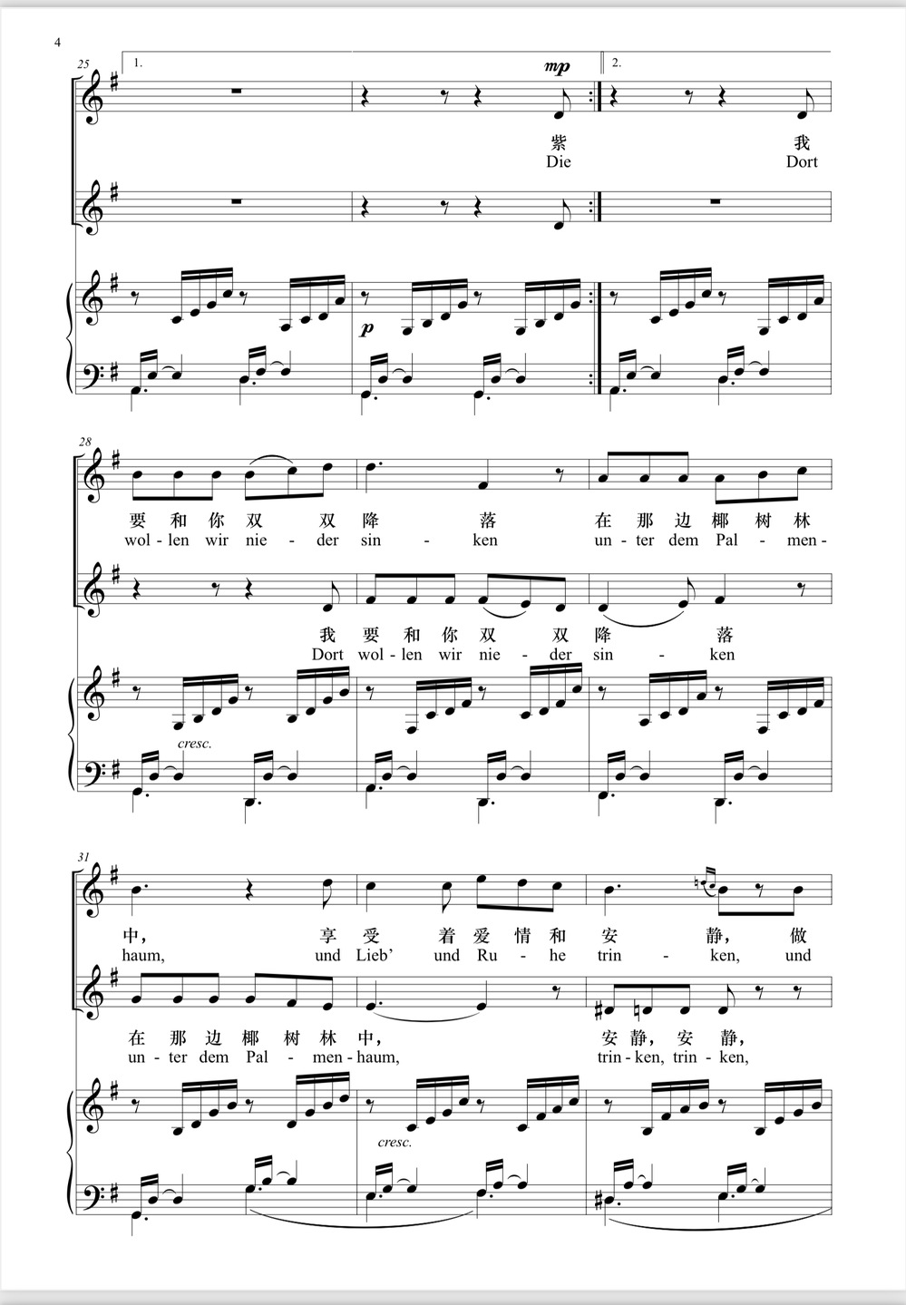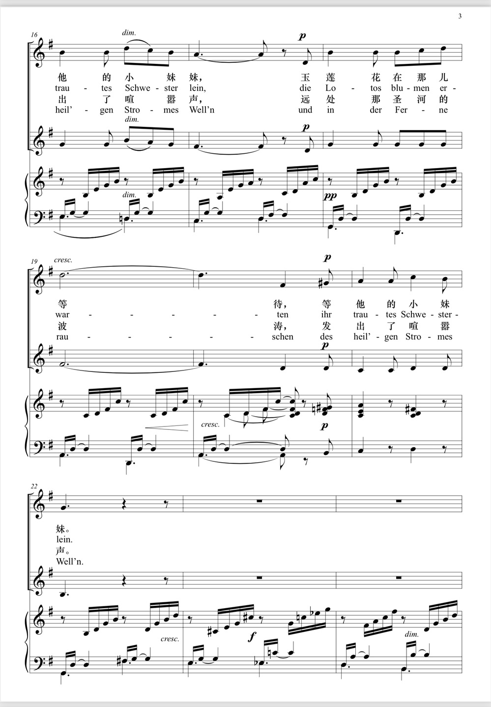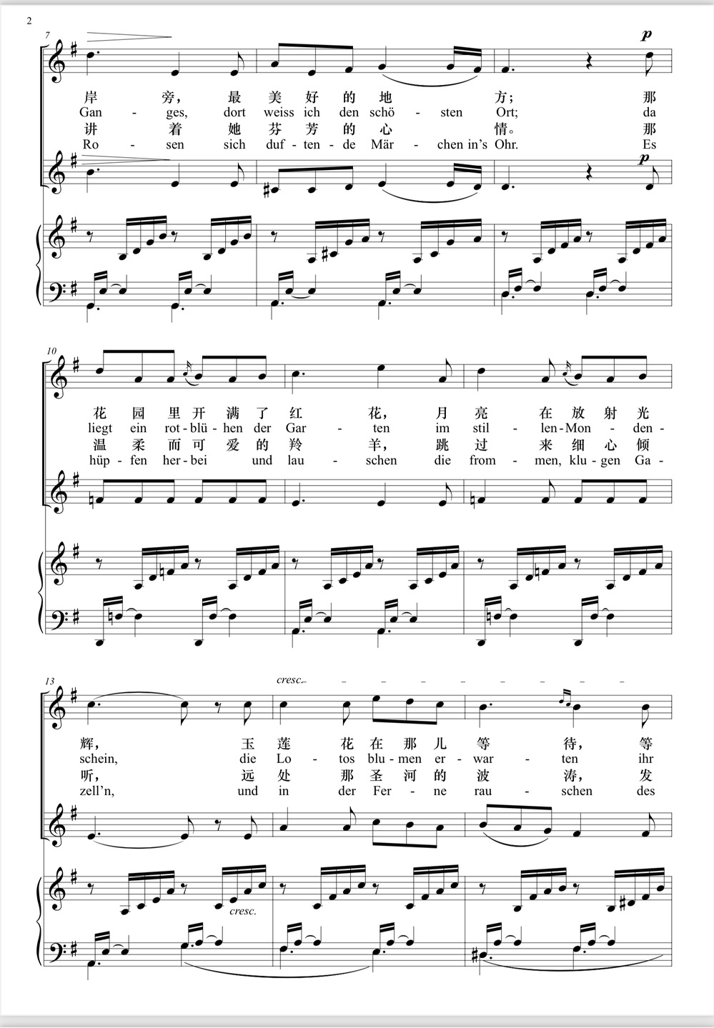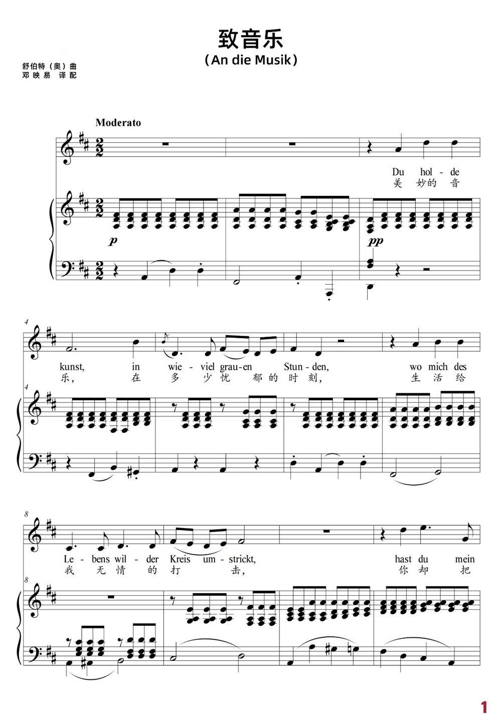 授课曲目:《致音乐》《乘着歌声的翅膀》《花非花》《月光》等。