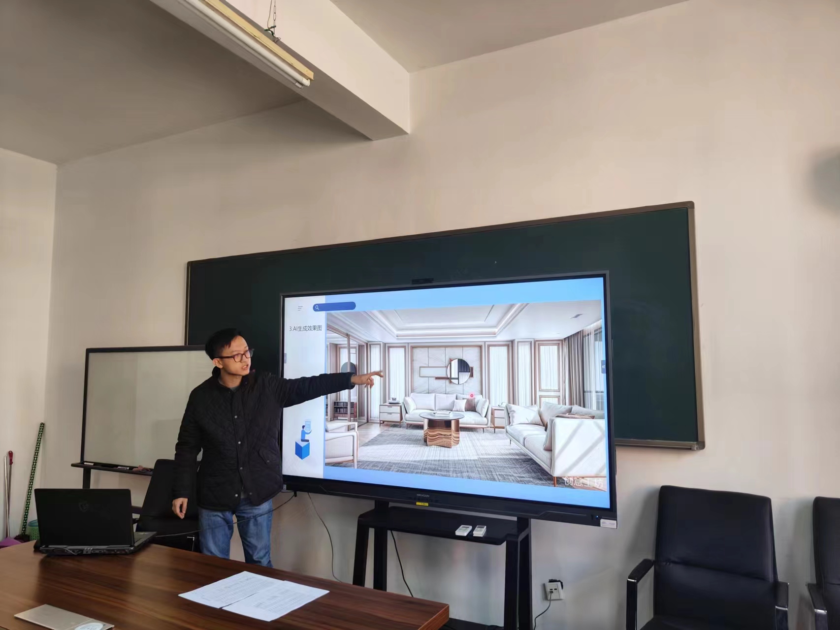 艺术学院教师王勐结合环境设计专业的行业现状,阐述了AI在设计领域的普及程度。他通过数据分析指出,高校教育必须紧跟行业需求,探索全流程课程的AI教学实践。