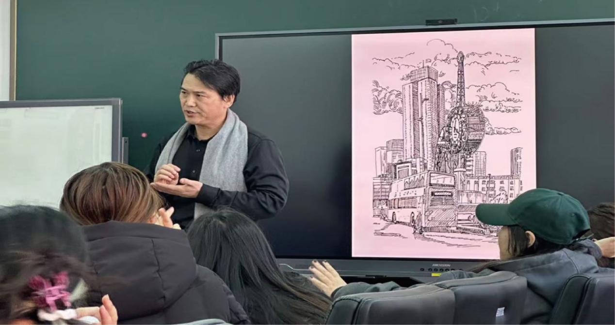 自2月27日以来,此次比赛吸引学院学生踊跃参与,共收到投稿作品76件。经过初步筛选,共计36幅优秀作品脱颖而出。为进一步提升学生作品质量,滑寒冰院长面向学生传授钢笔画理论知识,并对每一幅作品进行了细致点评。