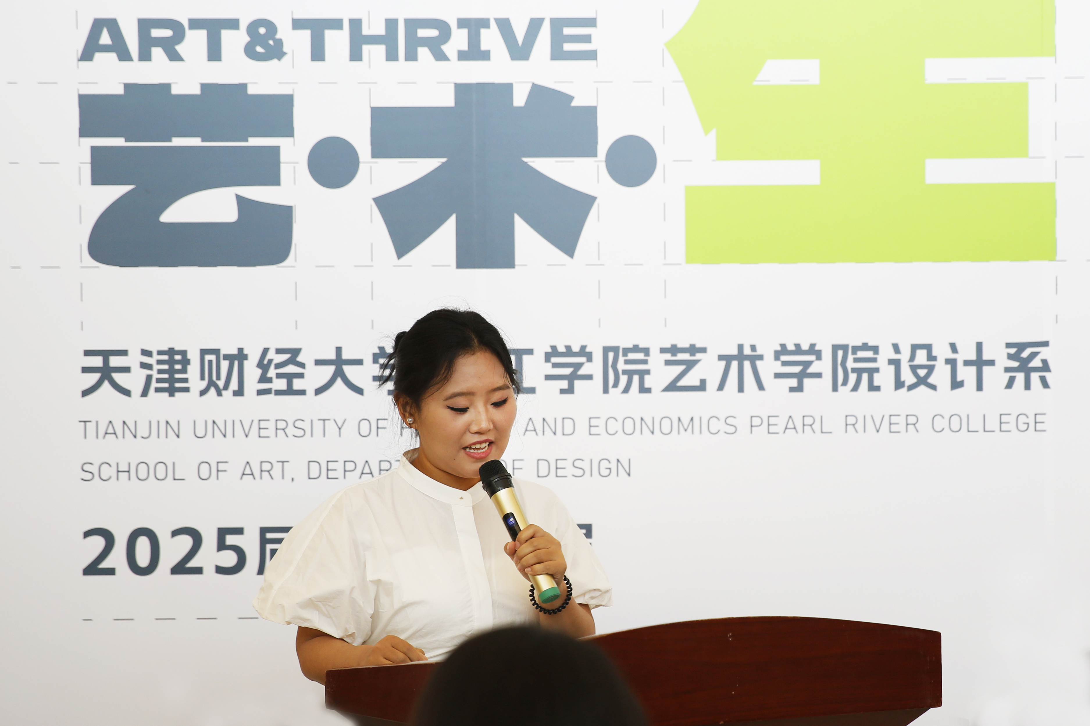 4月24日上午,艺术学院举办“艺·术·生——2025 届艺术学院毕业设计作品展”开幕式。本次毕业设计作品展共展出环境艺术和视觉传达两个专业,共141组设计作品。开幕式由艺术学院教师孙辉主持,学院党委书记梁海龙,副院长李晓鹏、李金山,党委副书记白晓,院长助理赵梦蝶出席;宝坻区委宣传部副部长焦杨、宝坻区文旅局局长巩慧、北京科技大学天津学院艺术设计系常务副主任李文红、天津市宝地旅游发展有限公司总经理王维、管理学院院长张英华、珠江学院各职能部门代表及艺术学院全体师生参加。