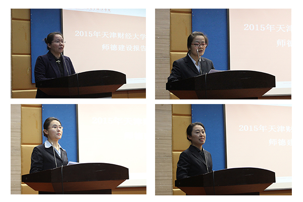 常务副院长刘秀芳对本次会议的召开和师德建设的重要性给予充分肯定,并对建成一支“德为人先、学为人师、行为世范”的高水平的教师队伍提出了要求。会上,金融系教师邱兰、国贸系教师郑颖、学工部辅导员籍丽娟、教务部教学管理人员毛亚琼分别作了师德交流发言,把自身在工作岗位上的深刻思考、所思所为向大家作了汇报。她们叙述的一件件小事,表达了她们的仁爱之心和高尚情怀,她们在报告中体现出的敬业、爱生与奉献精神引起与会教师的共鸣,也使在场教师受到了鼓舞和感动。