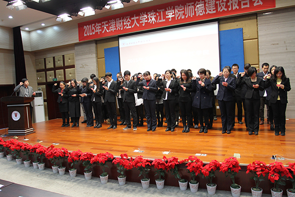 会上,党委书记李建航作了珠江学院师德建设报告,总结了2015年师德建设所做的工作、查摆分析了师德建设方面存在的问题与不足,阐明了今后师德建设的对策和思路。人文学院李晶老师现场宣读了《师德规范》。教务长时憧宇带领全体新入职的教职工履行了入职宣誓仪式。