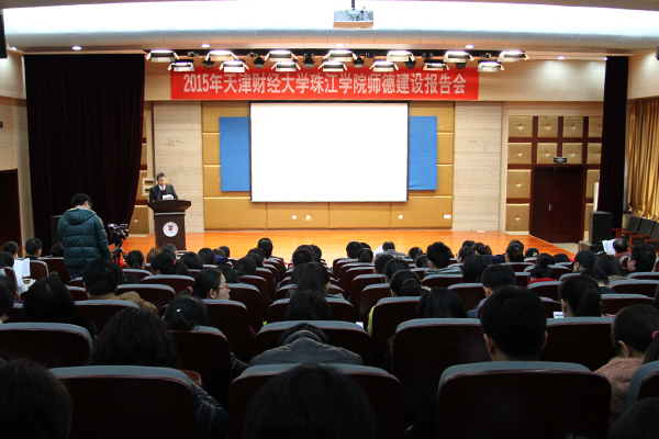 2015年12月2日,我院首届师德建设报告会在弘毅楼报告厅成功举办。报告会由学院常务副院长刘秀芳主持,全体教职工300余人参会。