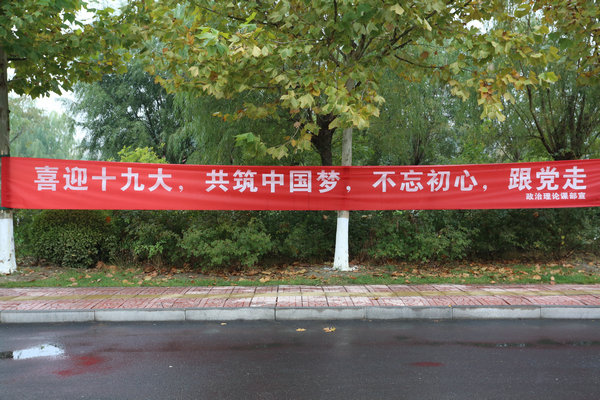 为浓厚十九大氛围,学院党委及各部门通过宣传栏、电子显示屏、横幅、微信、举办特色活动等形式开展宣传。