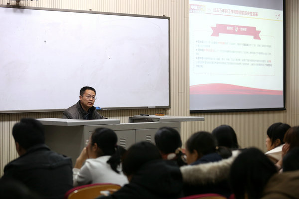 本次报告会是落实我院学习贯彻党的十九大精神工作方案的具体内容,近期学院将开展系列学习活动,持续推进十九大精神进校园、进课堂、进头脑,以习近平新时代中国特色社会主义思想为指导,切实办好人民满意的教育。