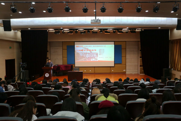 2017年11月22日下午,我院学习贯彻十九大精神专题讲座在弘毅楼报告厅顺利举行。讲座由yabo鸭脖官网马克思主义学院闫海潮副教授主讲,讲座以“学习十九大精神 争做新时代青年”为题,学生党员、入党积极分子、学生干部等200余人聆听了讲座。讲座由我院党委书记李建航主持。