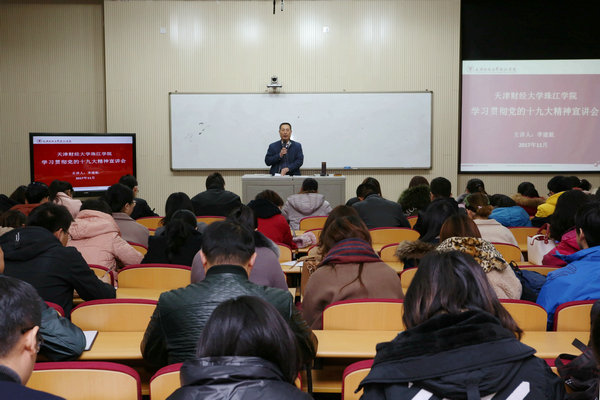 近日,我院成立了由学院院长、党委书记、党委委员、党支部书记、政治理论课部教师组成的“珠江学院学习贯彻十九大精神宣讲团”,按照我院学习贯彻十九大精神工作方案要求,陆续开展各类宣讲活动,掀起我院学习贯彻十九大精神的热潮,持续推进十九大精神进校园、进课堂、进头脑。