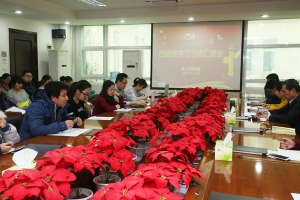 2017年12月20日下午,我院西柏坡学习实践交流汇报会在弘毅楼321顺利召开。学院党委书记李建航、党委副书记段建新、学院教工党支部书记、支部委员、赴西柏坡学习的教师代表参会。会议由党办主任蔡媛莉主持。