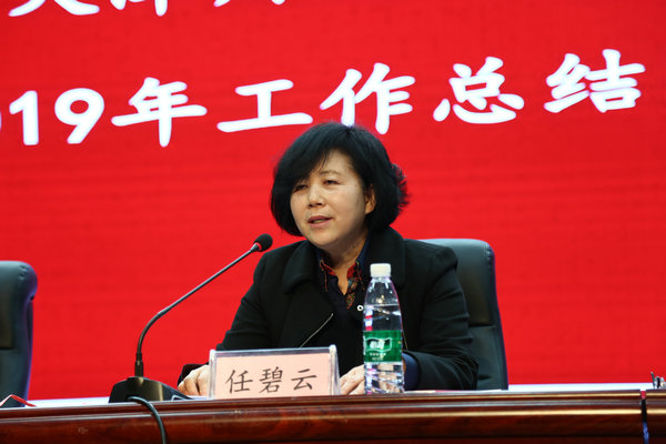 任碧云院长作总结发言。她代表院班子成员对全体教职工2019年的工作付出表示感谢,希望2020年全体教职员工在工作中继续坚守“以学生为本,以质量立校”的办学理念,进一步思考时间和效益问题,她特别推荐《稀缺:我们是如何陷入贫穷与忙碌的》一书,希望大家能够认真阅读。为争取圆满完成学院2020年工作目标有更加清晰的思路和做法,任院长提出四点要求。一是要不忘初心,牢记使命。进一步找准方向,明确思路,统一思想,把学院各项工作部署计划好、落实好、完成好。二是要勤于学习,善于思考。教职员工要培养继续学习的能力,养成读书学习的习惯,加强思考,提升学习效率和工作效果。三是要管好时间,用好资源。用有限的时间、安排好资源,努力完成学院各项重点工作。四是要重视总结,学会反思。教职员工要明确自身定位、职责,通过总结反思,提升能力、加强合作、实现目标。