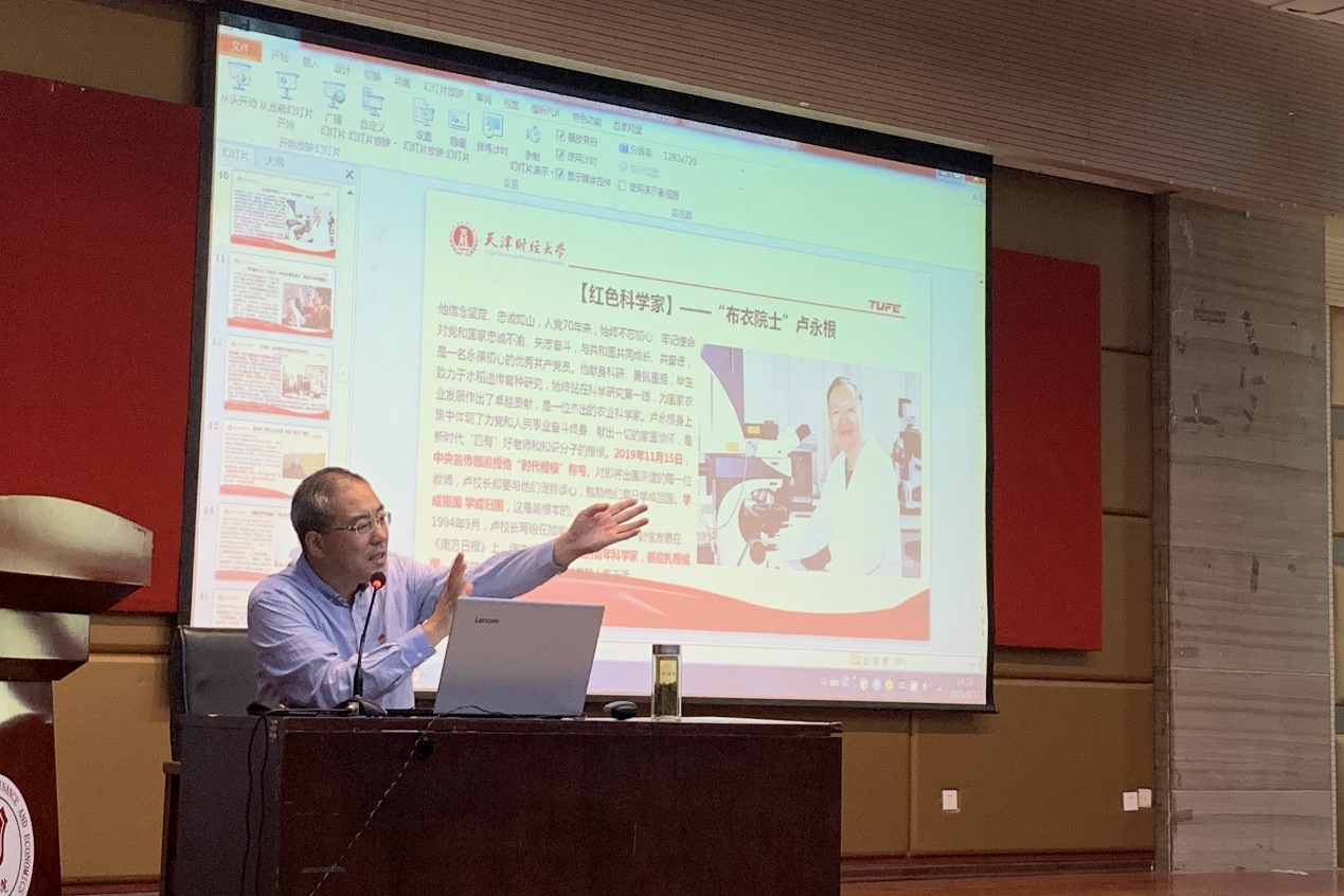 管理学院党总支书记郑鲲鹏对精彩的宣讲报告作了点评,他希望全体师生要向革命先烈学习,发扬艰苦卓绝、砥砺前行的精神,践行初心使命,争做合格的共产党员。