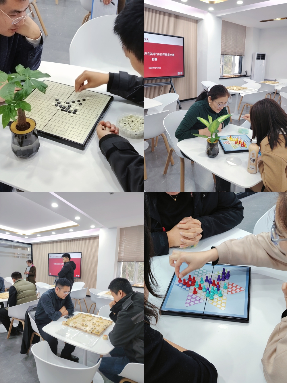 为弘扬中华优秀传统文化,营造文明、和谐、智慧的校园氛围,10月29日至30日,学院工会精心组织的2025年教职工棋类比赛在弘毅楼教师休闲室火热开赛。本次活动旨在以棋会友,陶冶情操,进一步增强教职工的凝聚力与文化认同感。本次比赛设有中国象棋、五子棋和双人跳棋三大项目,既涵盖了国粹经典的深度,也兼具了现代棋类的趣味与协作精神。