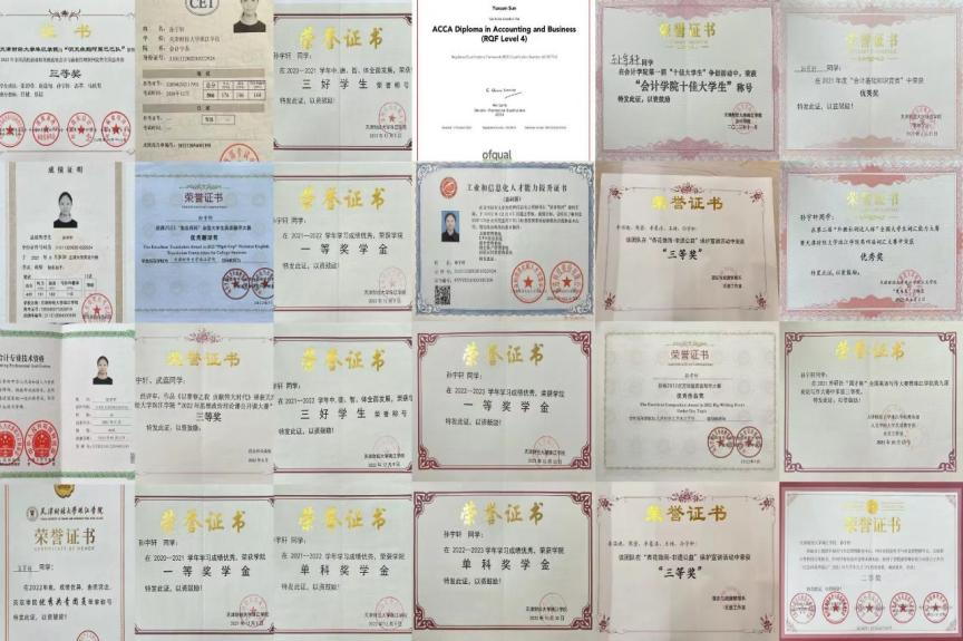在校期间她参加了各类校内外比赛并取得一定成绩,2023年全国高校商业精英挑战赛会计与商业管理案例竞赛全国总决赛三等奖,天津师范大学课题“意识形态”(校级)课题立项等。在证书方面,她已取得初级会计证书、工业和信息化人才能力提升证书、特许公认会计师公会(ACCA)学员,已通过F阶段5门,并取得ACCA初级商业会计证书。