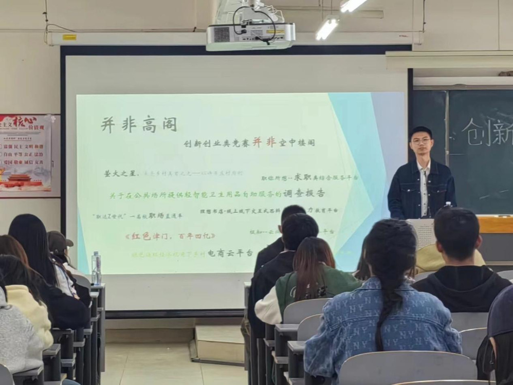 创新创业类竞赛并非空中楼阁,一定要敢想、实践、会创。号召班级干部加强宣传引导,激发同学们敢想敢闯的创新创业热情,释放创新创业动能,真正实现以创新引领创业、以创业带动就业的目标。学院也会继续搭建平台,加强顶层设计,做好创新创业指导,引导学生在创新创业中增长智慧才干、在艰苦奋斗中锤炼意志品质,让学生努力成长为适应新质生产力发展要求、矢志为中国式现代化建设挺膺担当的拔尖创新人才。