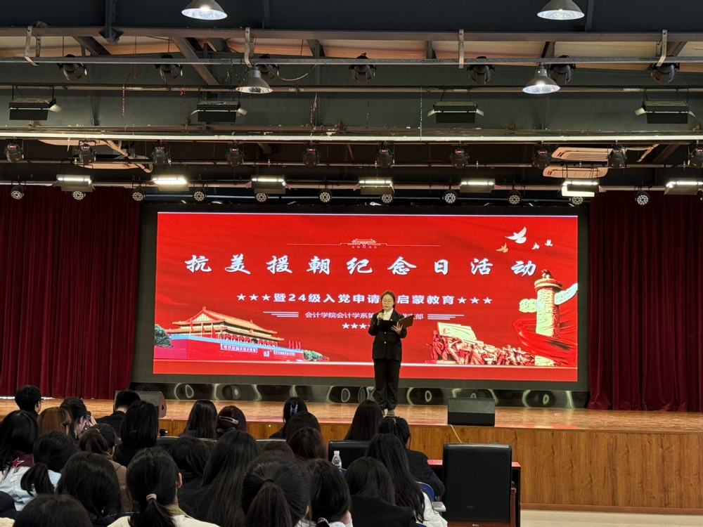 为深入学习贯彻党的二十届三中全会精神,进一步加强爱国主义教育,激发党员和入党申请人的爱国热情。10月23日,会计学系会计第一学生党支部在素教二楼召开抗美援朝纪念日主题观影暨24级入党申请人入党启蒙实践教育活动。党支部书记王振,组织委员边宏伟及党员同志参加本次活动。