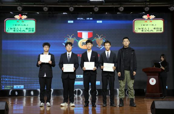 经过初赛、复赛的激烈比拼,最终有四支队伍16位选手冲进决赛。在比赛环节,会计一队汤朝辉、汤懿琪、牛政耀、李昂熹获得冠军;会计二队马若瑀、杜丰宇、高文博、张凯宇获得亚军;会计三队杜雨坤、侯文渊、林良俊、王谱瑞获得季军;会计四队杨婧雅、黄贝贝、柯哲然、张敬冉获得优秀队伍荣誉称号;牛政耀、张凯宇、王谱瑞、柯哲然获得最佳辩手的荣誉称号。