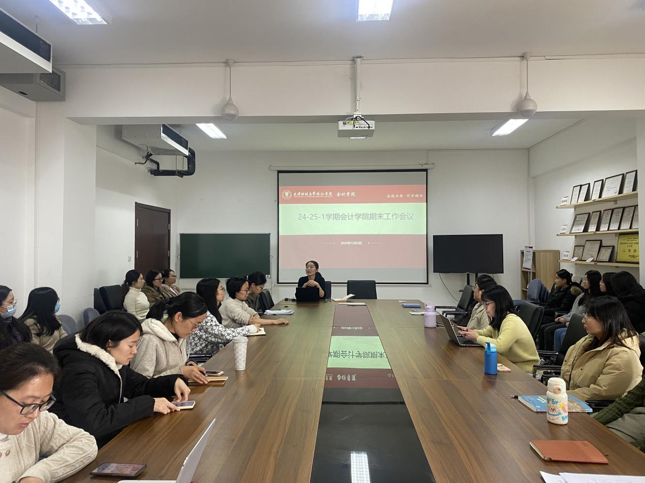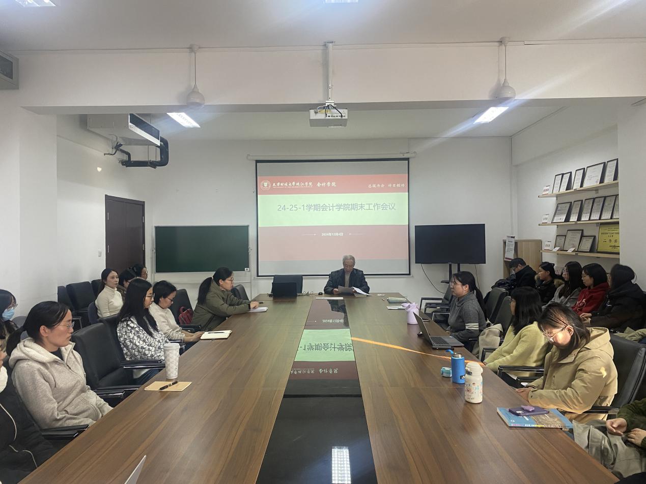 12月4日,会计学院在中和楼B409召开了24-25-1学期期末工作部署会议。会计学院院长韩传模,副院长徐立文,院长助理汪蕾,各系主任出席本次会议,全体教师参会。会议由会计学院办公室主任杨璐主持。