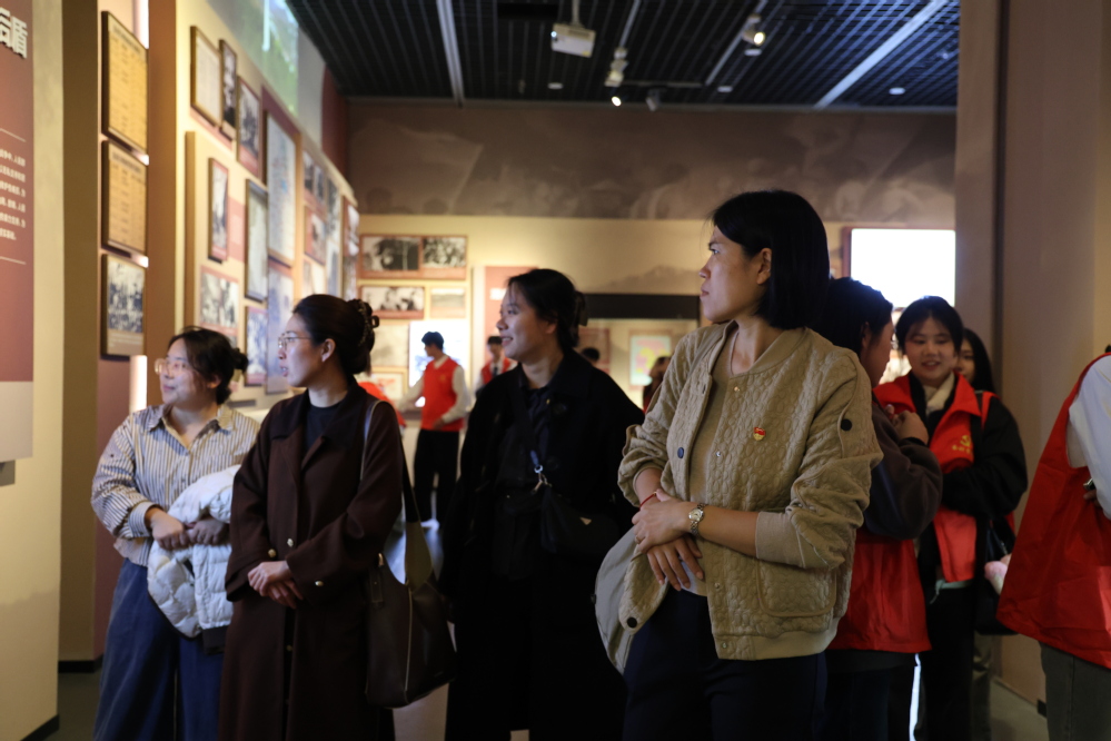 展厅内,历史不再是文字记载,而是可感可触的“鲜活记忆”:一幅幅定格战火瞬间的珍贵照片,记录着战士们冲锋的背影与百姓支援前线的赤诚;一件件承载抗争意志的手稿文物,字里行间满是“宁为玉碎,不为瓦全”的气节。在“盘山烽火”展区,面对展示游击战的恶劣环境与战士们“野菜充饥仍冲锋”的不屈意志的展品,师生党员纷纷驻足凝视,内心深受震撼。这恰是习总书记在纪念中国人民抗日战争暨世界反法西斯战争胜利80周年大会上所强调的“在中国共产党倡导建立的抗日民族统一战线旗帜下,中国人民以铮铮铁骨战强敌、以血肉之躯筑长城,取得近代以来反抗外敌入侵的第一次完全胜利”的生动地方注脚。