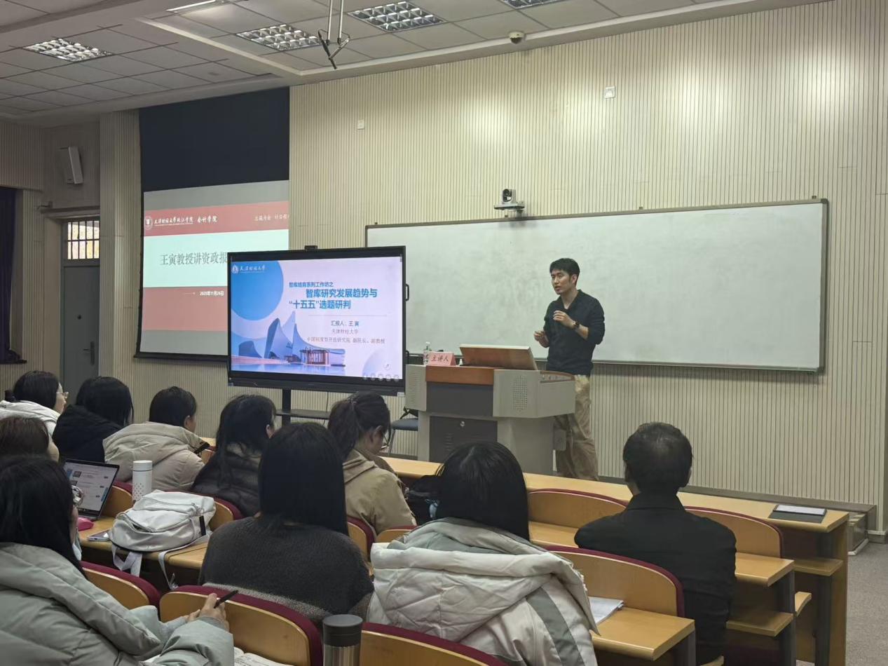王寅教授围绕咨政研究趋势、智库成果的细节变化以及“十五五”选题三个核心内容进行了系统而深入的讲解。王教授结合个人撰写咨政报告的丰富经验,提出组建复合型团队、创新挖掘新兴领域、形成产业网络等具体建议。整场讲座内容详实,既有理论高度,又有实践指导意义。会后,王教授还与在场教师进行了互动交流,针对老师们在咨政报告撰写中遇到的具体问题给予了耐心细致的解答。
